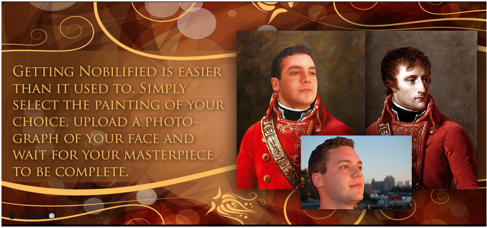 But what I have been seeing lately is that the "hook" has become the expression. Take for instance nobilified.com – it's a website that lets you put your mugshot into a musty old school portrait. Genius. It's Art, but also advertising for our ever burgeoning egos. The "hook" is offering something old to our new on-demand needs.