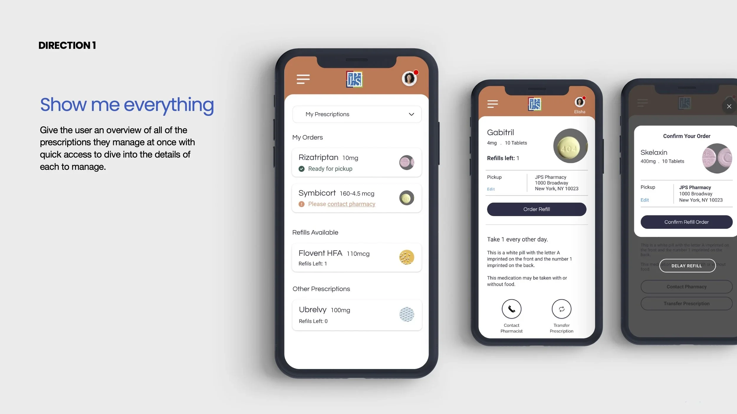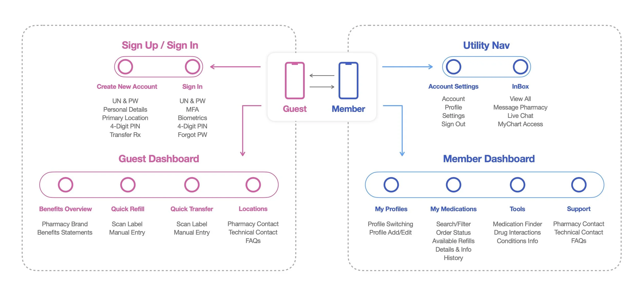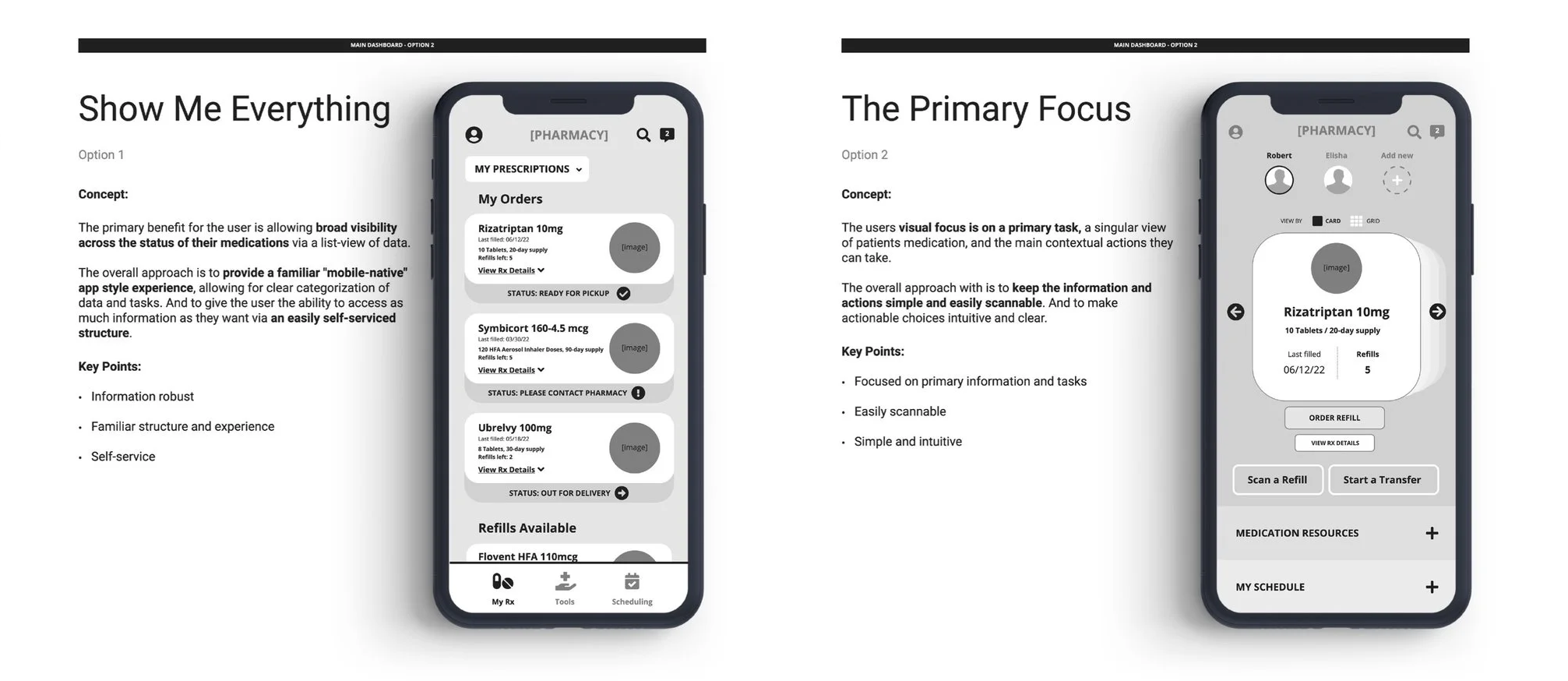 Our stakeholder interviews helped us define the 2 clear business product objectives – design a digital management platform where retail pharmacy customers can easily manage prescriptions, and develop the platform so that clients have full customization of the feature sets and the branding and UI stylization.