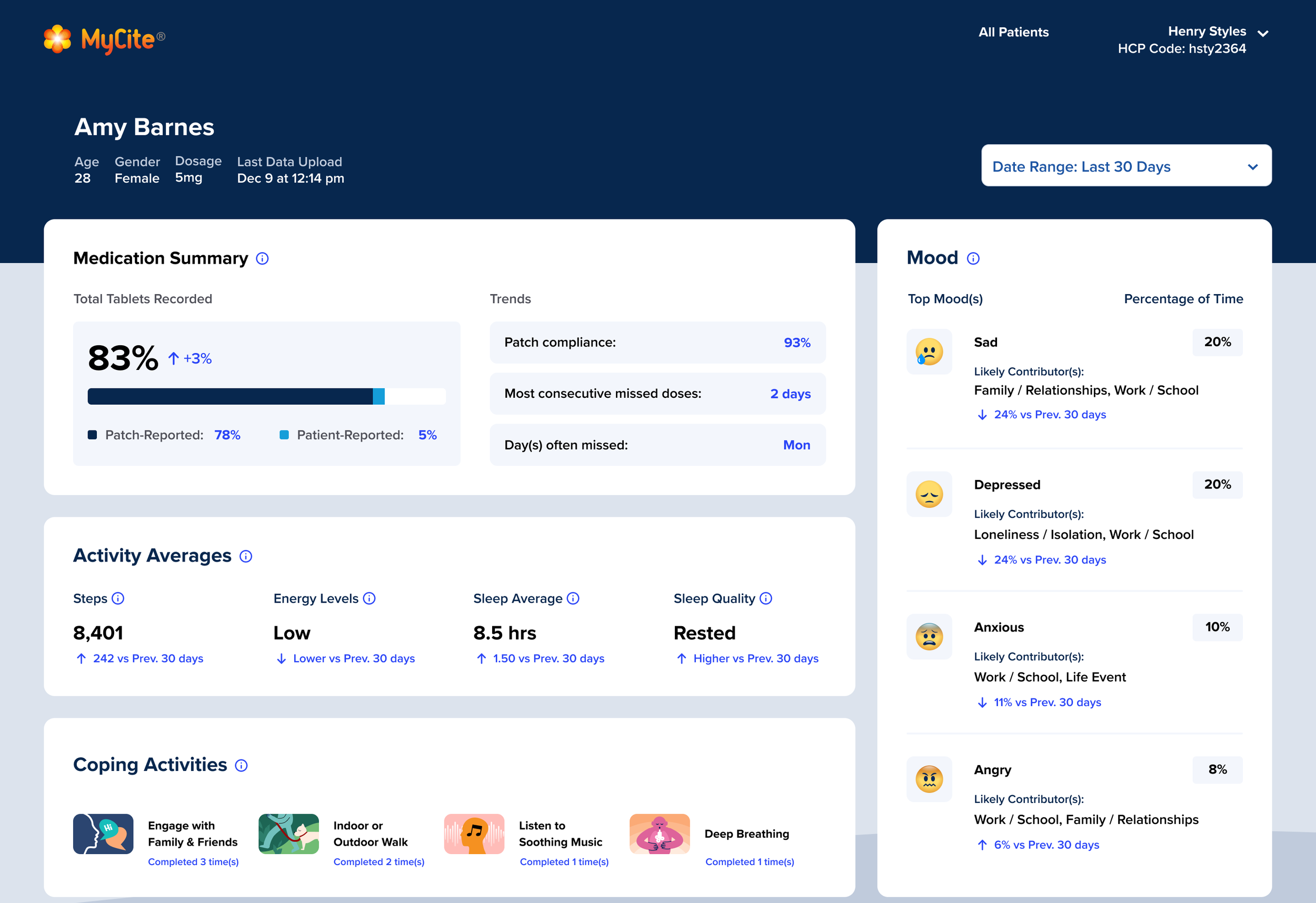 We employed clear and intuitive data visualizations (e.g., line graphs, bar charts) to help HCPs quickly identify patterns and trends in patient data.